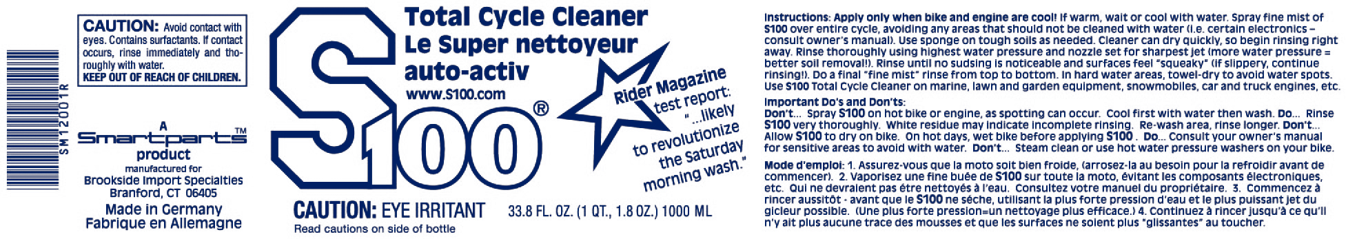 The S100 product line reflects efforts by highly trained and experienced chemists to provide you with products that are safe and easy to use and we want you to have a positive experience using them. This begins by understanding their purpose and how to use them properly. To the right, you will find a product label containing usage instructions, any required warning statement(s) and ingredient information.